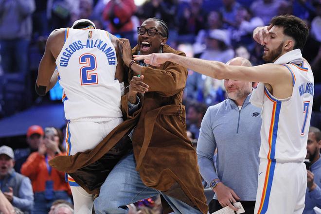 雷霆隊的亞歷山大上半場得到18分、4個籃板和5次助攻,米切爾得到12分,卡魯索得到10分和4個籃板,霍姆格倫和哈滕各得到9分;湖人隊的東契奇得到11分、5個籃板和4次助攻,里夫斯得到8分。